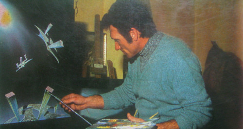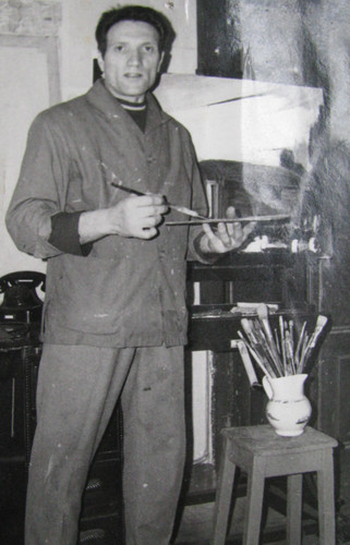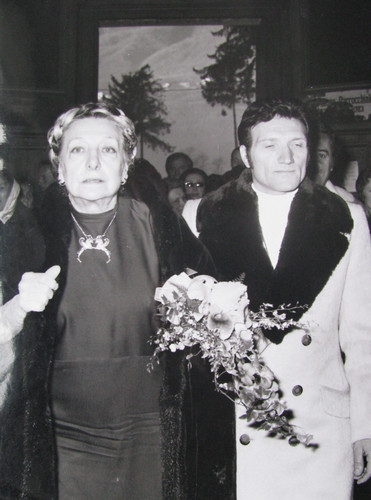 A CASA DI PAOLA BORBONI PRIMA DELLE NOZZE CON BRUNO VILAR MENTRE DEDICA UNA SUA OPERA NEL 1970