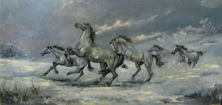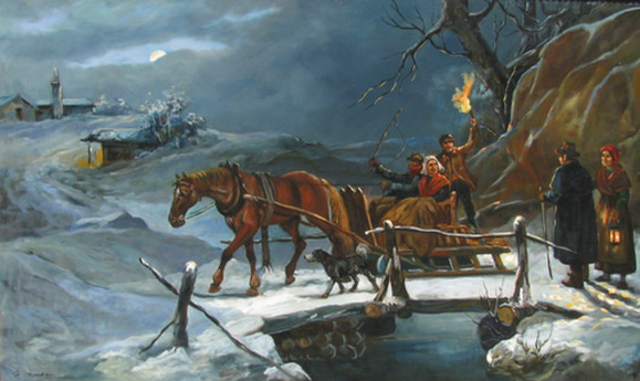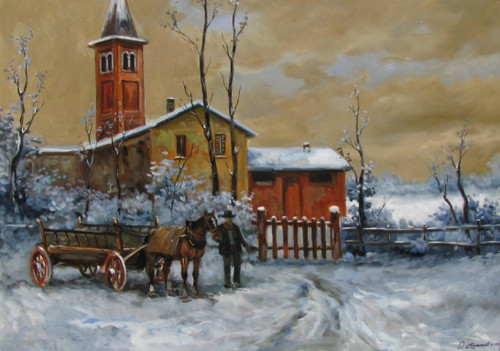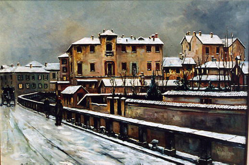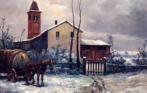 NEVICATA NOTTURNA A CHAMPORCHER (VAL D'AOSTA) - OLIO SU TELA 115 x 75
