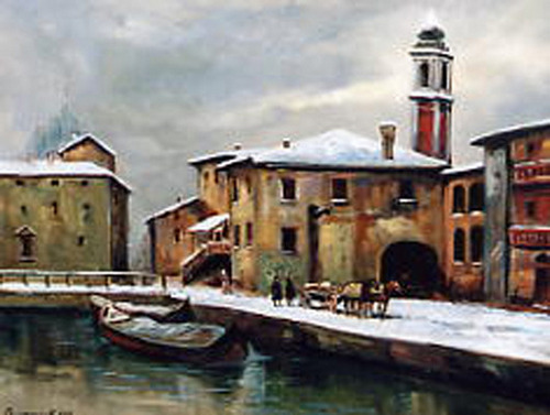 QUADRO DI NICOLA DE CORSI (1882 - 1956) - OLIO SU TELA - 40 x 80 - PITTORE DI MARINE E SCORCI URBANI PARTENOPEI DI VISIONI LAGUNARI VENEZIANE