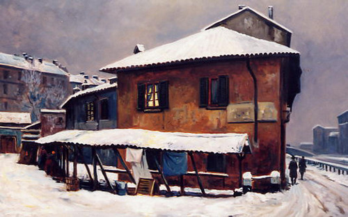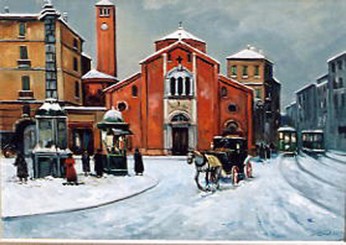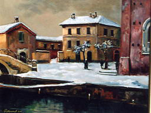 SAN CRISTOFORO NEGLI ANNI '50 - OLIO SU TELA 50 x 40