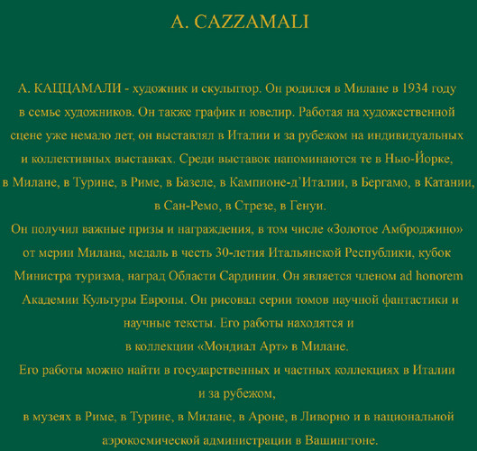 La copertina è stata riprodotta dalle opere spaziali del Maestro A. Cazzamali per la Casa Editrice Nord e Suga