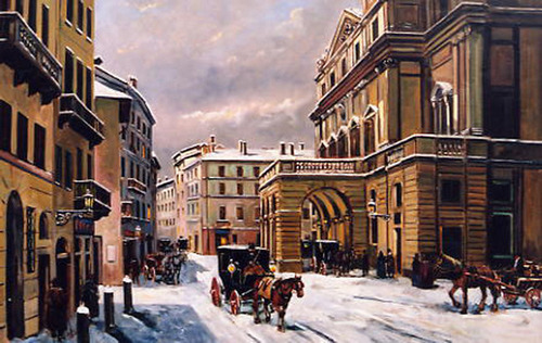 PIAZZA DELLA SCALA E LA 'CORSIA DEI SERVI' NELL'800 - OLIO SU TELA 90 x 60