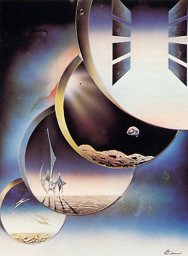 COPERTINA DEL VOLUME SCIENTIFICO L'AVVENTURA UMANA NELLO SPAZIO - DA UNA GIURIA INTERNAZIONALE DELL'AEROSPACE MEDICAL ASSOCIATION USA E' STATO PRESCELTO PER ILLUSTRARE LA COPERTINA DEL VOLUME DI MEDICINA AEREOSPAZIALE (PUBBLICAZIONE AVVENUTA NEL 1976)