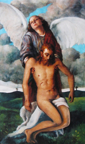 DEA CON PUTTO NELL'OLIMPO - OLIO SU LASTRA 49 x 60
