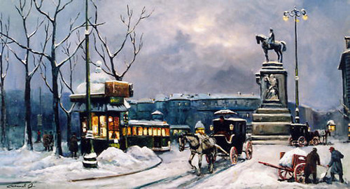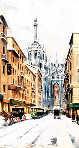 SAN BABILA NEGLI ANNI '40 - OLIO SU TELA 70 x 50