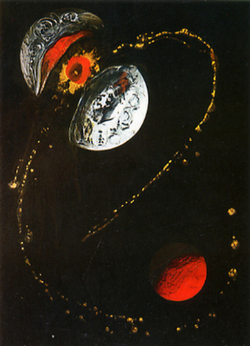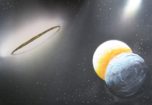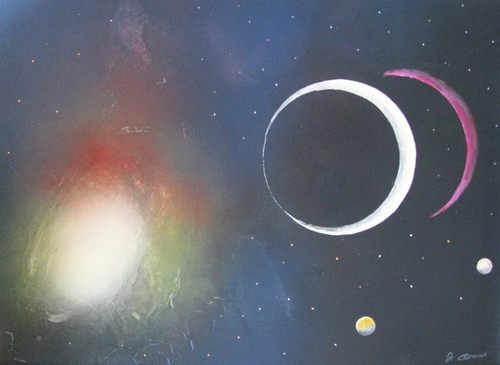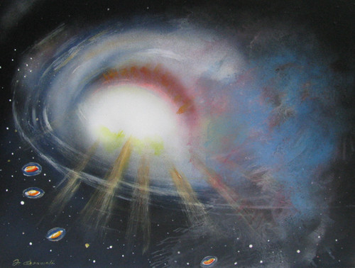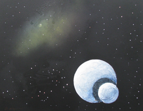 ECLISSI COSMICA CON GALASSIE SPIRALI - TECNICA MISTA 55 x 40