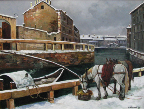 NOSTALGIA DI MILANO - QUADRO DI A. FRANZOSINI (1920 - ?) - OLIO SU TELA - 60 x 80