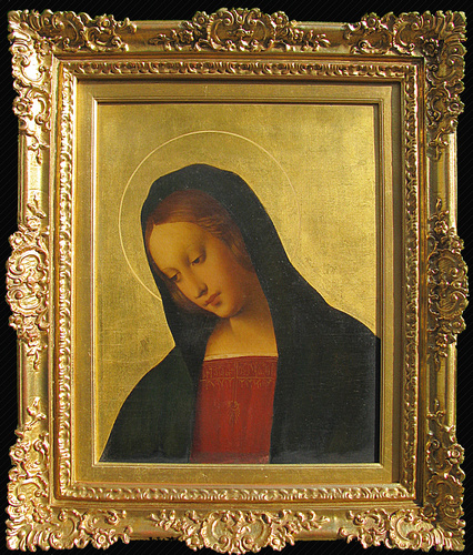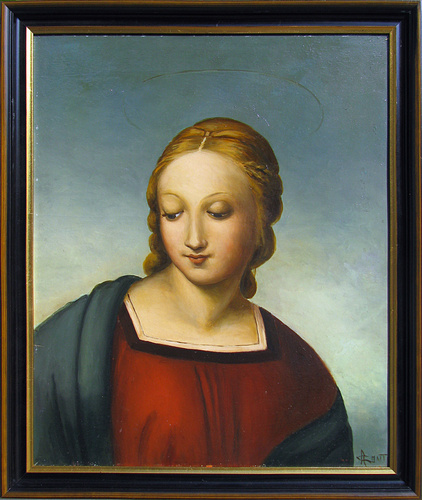 QUADRO DEL MAESTRO COPISTA G. BERETTA - OLIO SU TAVOLA 40 x 50 - COPIA DEL QUADRO DI RAFFAELLO SANZIO CHE FU COMMISSIONATO DALLA FAMIGLIA ANSIDEI PER LA PALA DELL'ALTARE DELLA CHIESA DI S.FIORENZO DEI SERVITI A PERUGIA