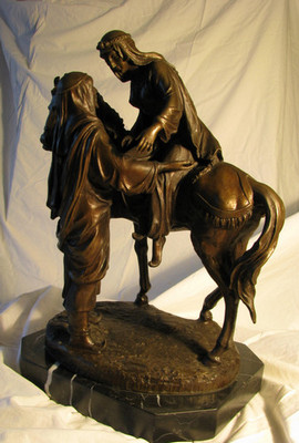 SCULTURA ARABESCA (XIX SECOLO) RAPPRESENTA LO SPOSO CHE AIUTA LA PROPRIA AMATA A SCENDERE DAL CAVALLO - 30 x 24 h 45