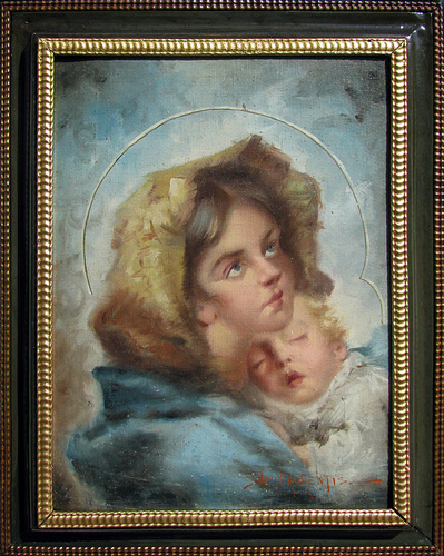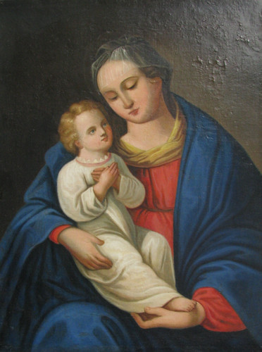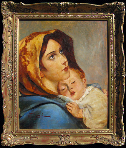 QUADRO DI B. FRANCHINI - OLIO SU TAVOLA 28 x 34 - 'MADONNA CON BAMBINO' - OPERA FIRMATA E DATATA 1938