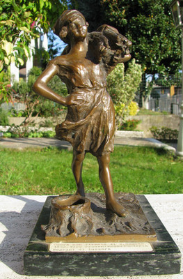 CONTADINELLA CON IL COVONE DI GRANO (XIX SECOLO) OPERA PROVENIENTE DALLA FONDERIA NEGRINI DI LUZZARA DI VINCENZO GEMITO - 10 x 17 h 24
