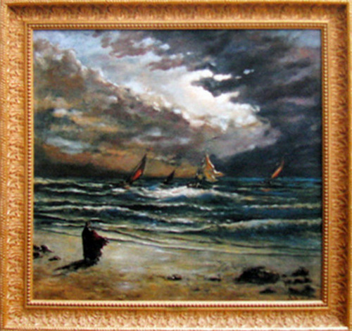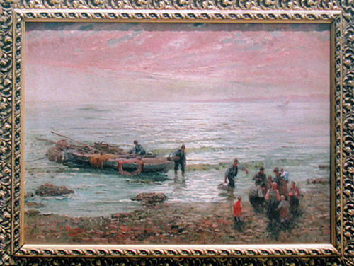 L'ATTESA DEI PESCATORI - QUADRO DI ESPOSITO (NAPOLI) - OLIO SU TELA 75 x 70