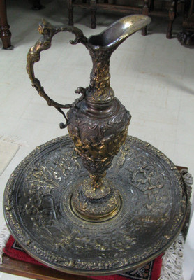 ANFORA CON SOTTOPIATTO IN BRONZO - COPIA DEL CELLINI - h 43 x 38