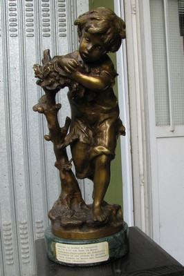 FANCIULLO CON PIANTA DI GHIANDE (XIX SECOLO - FIRMA ILLEGGIBILE) - 17 x 17 x h 41