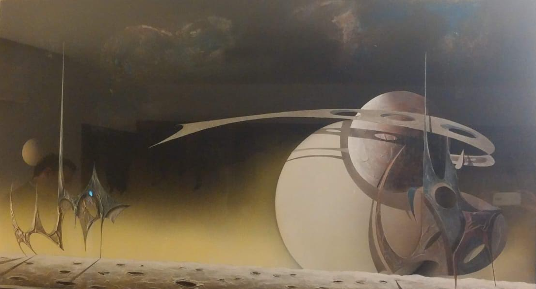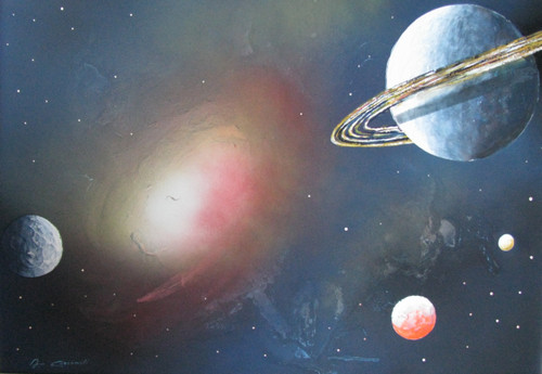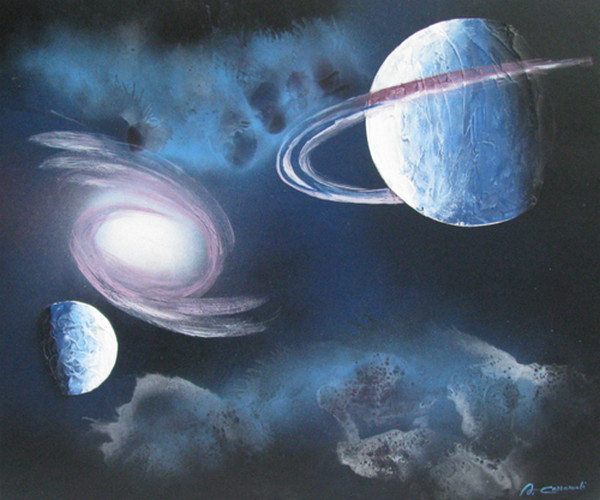 SATURNO CON NEBULOSE - TECNICA MISTA 40 x 55
