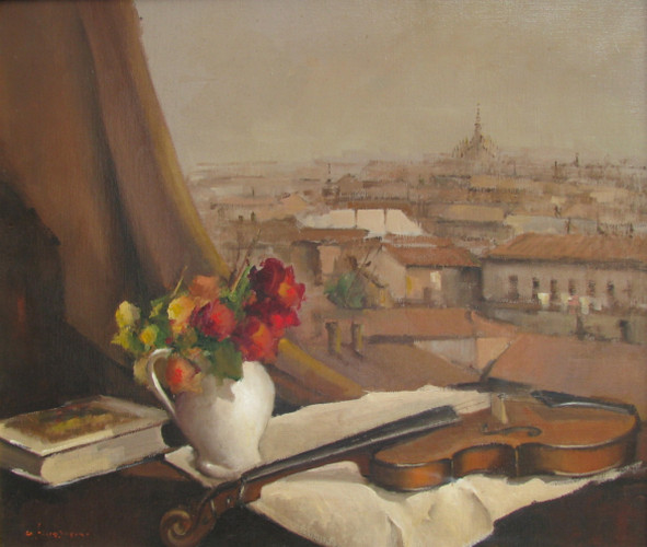 PORTA ROMANA NEGLI ANNI '20 - OLIO SU TELA 70 x 50