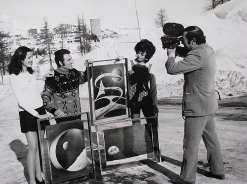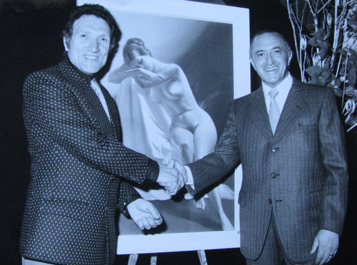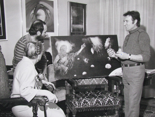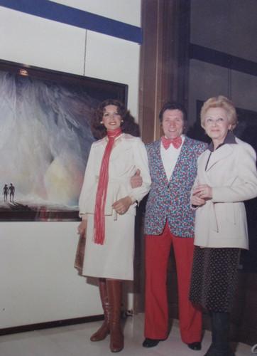 CON LE MOGLI DI VITO LIVERANI (FOTO OMEGA) E GIULIANO CHELICI (CINEOPERATORE RAI) DAVANTI AL QUADRO CHE RAPPRESENTA ADAMO ED EVA