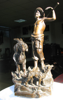 GIOVINETTO AL PASCOLO CON CAPRE E CANE (PRIMO '900) - 21 x 25 h 41