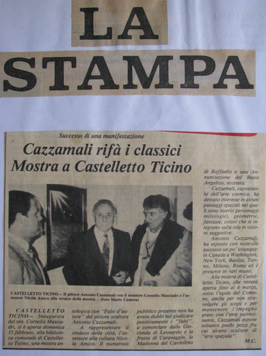 AD UNA MIA PERSONALE A CASTELLETTO TICINO CON IL SENATORE CORNELIO MASCIADRI (dal giornale LA STAMPA)