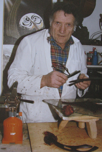 NELL'ATELIER DI CORSO SAN GOTTARDO 12 CON GIANCARLO GARBELLI CHE AMMIRA L'OPERA 'L'ETERNO FEMMININO' (opera disponibile)