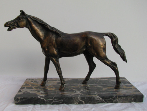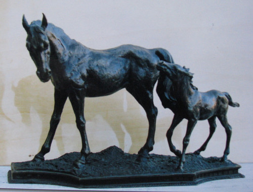 BRONZO A CERA PERSA - CAVALLO CON CAVALLINA - h 33 x 50 x 20