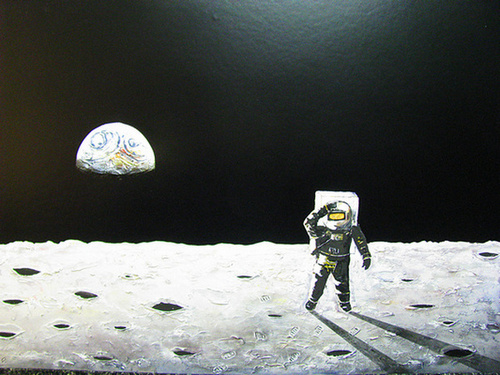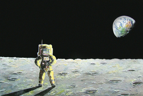 ASTRONAUTA SULLA LUNA - TECNICA MISTA 70 x 50