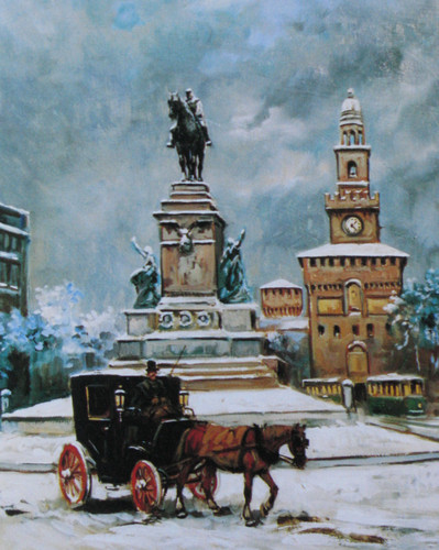 PIAZZA CASTELLO NEGLI ANNI '30 - OLIO SU TELA 120 x 70