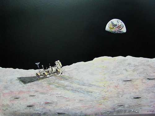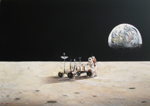 Rover su territorio selenico - Tecnica mista - 70 x 100