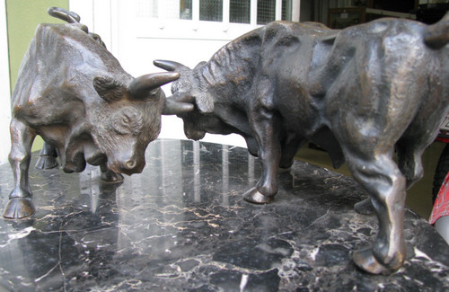 COPPIA DI GLADIATORI - BRONZO ORO ZECCHINO E ARGENTO - 9 x 7 h 25