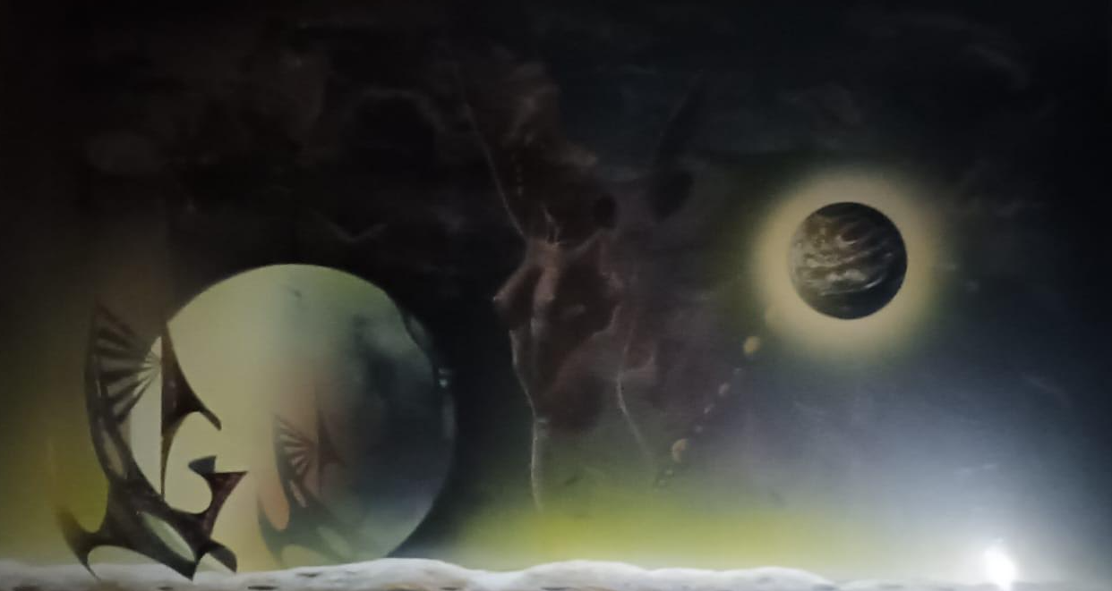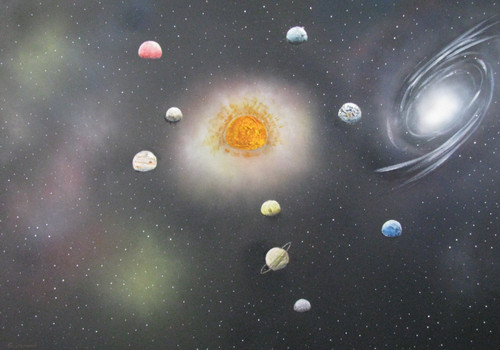 SISTEMA SOLARE CON ESPANSIONE DELL'UNIVERSO - TECNICA MISTA 100 x 70
