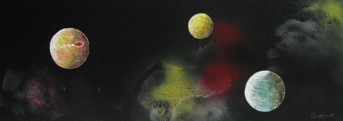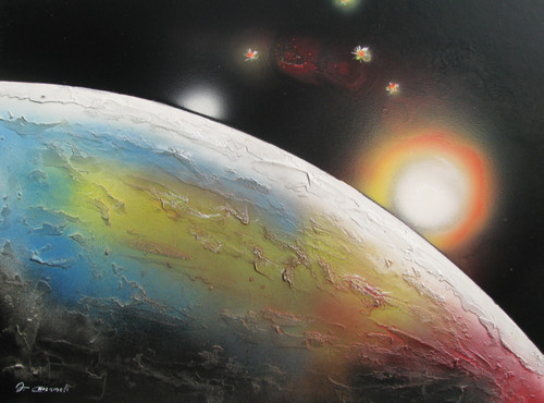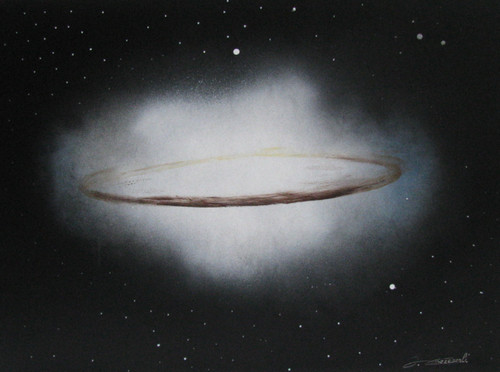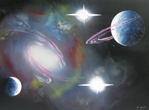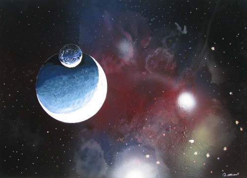 GALASSIA TRASVERSALE E PIANETI NELL'UNIVERSO - TECNICA MISTA 49 x 34