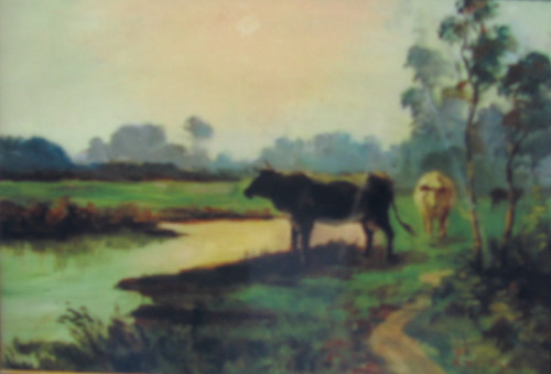 'MUCCA AL PASCOLO' - QUADRO DI R. LOPEZ DATATO PRIMO '900 - OLIO SU TAVOLA 70 x 50